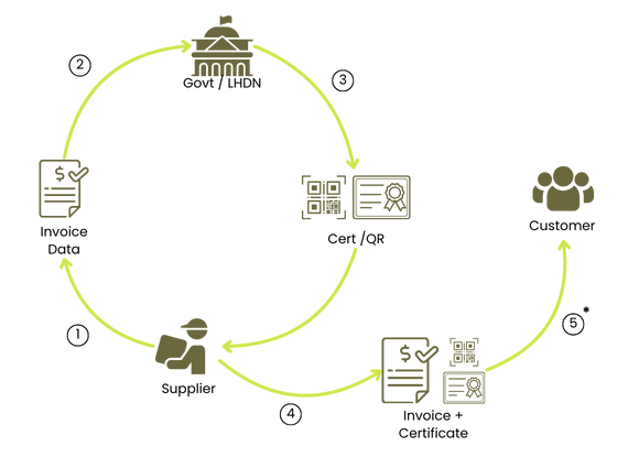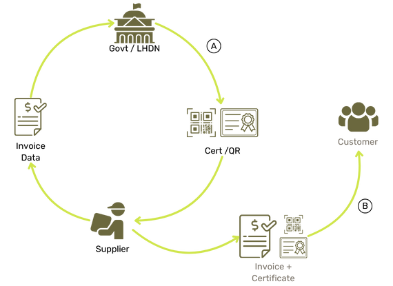 A. Technically, the LHDNM initiative for e-invoicing focuses on the validation of invoice data and the generation of a certificate / QR code. This process allows for end Customers to cross-check invoice details, and also improves tax reporting and collection.