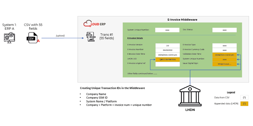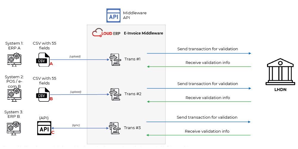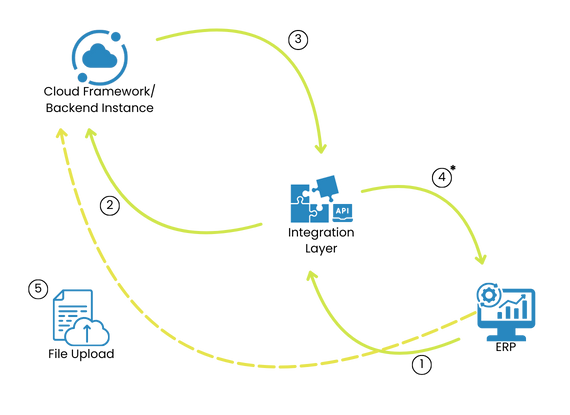 In the event the ERP solution is unable to integrate through an API, a file upload process will be adopted to the e-invoice cloud framework/backend instance.